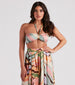 Bring the heat to your spring break look with this trendy crop top that will get everyone's attention! It features a sleeveless sweetheart neckline with a padded bust. thin halter straps with multiple ways to style. a stretchy smocked back. an ultra-cropped hem. and a sassy abstract printed design. Style with the matching wide-leg pants to be vacay-ready!