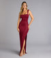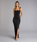 Dazzle the room with a look as captivating as the Brittney glitter formal dress with a sensational lace-up cutout back and high front slit along the sultry bodycon fit.Â
