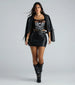 Buckle up and prepare for stares in this faux leather mini skirt perfect for flaunting your edginess! The skirt features a high-rise waist with an adjustable belt. a bodycon silhouette. side cargo flap pockets. and a mini-length hem. Complete the look in a basic tee and boots for an evening downtown!