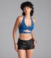 Buckled Babe Halter Denim Crop Top