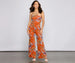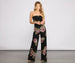 Get a romantic look for date night this spring in this stunning floral printed jumpsuit! It features a strapless square neckline. a high waist. and flowy pant legs. The sheer mesh fabric has a gorgeous all-over rose print and includes a full knit lining. Complete your outfit with wedges and new earrings.