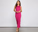 Button up in a stylish midi dress! The dress features a sleeveless crew neckline. a midi length silhouette. and a mini side slit with multi-button-up closure. The dress is composed of a ribbed knit fabric that offers a form hugging fit with a moderate stretch. Complete look with mules and hoops.Â
