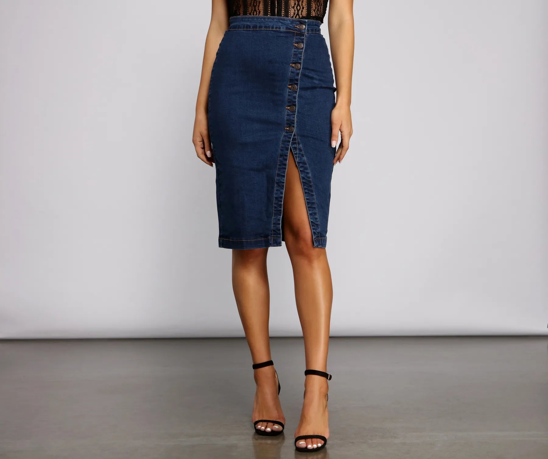 By Your Side Button Down Denim Skirt