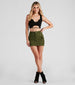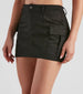 Command the room as the fashion cadet ready for duty in this cargo mini skirt featuring a high-rise waist. front button closure. belt loop accents. side flap pockets. and a bodycon silhouette. Complete the look in a cool graphic tee and boots.