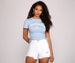 Keep it dreamy with a graphic tee that reps the golden state! The tee features a crew neckline. a graphic that reads: "California". dual ruched side seams. and a cropped hem. Complete look with cutoff shorts.Â