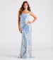 Shine like the star you are in the Camilla formal sequin dress to strike a stunning impression! Perfect for school dances. celebrations. and weddings she shines under all the lights. Featuring a sleeveless square neck. adjustable dual spaghetti straps. a lightly padded bust. a lace-up back tie design. and a mermaid silhouette that flows into a floor-sweeping hem. The formal dress is composed of a sequin-embroidered scroll pattern on mesh fabric with a stretchy knit lining. Style with a chic clutch and bracelet to complete the look!