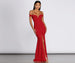 Start off your special night with the perfect attire. Introducing our Camryn. designed with a deep sweetheart neckline. off shoulder sleeves. and a form fitting silhouette. The ruching down the center gives a flattering curve hugging detail and shows a high slit up the center. Her hem is floor sweeping and she is composed of a crepe material that offers moderate stretch.