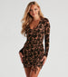 This velvet floral min dress will look stunning for your next dinner date! It features long sleeves. a v-neck. bodycon silhouette. mini-length. and a front drawstring for a customizable fit. Complete the look in lace-up heels.