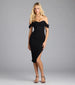 A girl like you can't help but show up in this midi dress and slay! The midi-length dress features a sultry off-the-shoulder sweetheart neckline. short-sleeve cuffs. a ruched and padded bust. a flattering side slit. and side ruched seams that accentuate your curves along the bodycon silhouette. Complete the look in strappy heels for a dinner party or wedding!