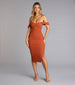 Can't Help It Mesh Off-The-Shoulder Midi Dress