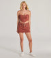 A denim mini skort features a flattering mid-rise belted waist and a bodycon silhouette for a trendy look. Perfect for casual occasions.