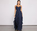 Bring the charm in our Carla dress! She features a sleeveless lined bodice. a plunging V neckline. adjustable spaghetti straps. padded cups. princess seams at the bust. and a partially open back. Her natural rise waist leads to a sweeping A-line silhouette adorned floral lace tendrils. The dress is composed of a lined chiffon fabric that offers a relaxed fit with a slight stretch. Includes a back zipper closure with hook and eye clasp. Complete look with rhinestone earrings and chrome heels.