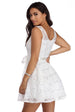 What better way to party this season than with our Cassandra lace sequin dress! She's ready for wedding festivities or graduation with tank style bodice. a sweetheart lining. an exposed back zipper closure. and a ribbon belt around the waist. Dress is composed of a sheer lace dress with sequin accents and offers minimal stretch.