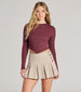 This rib knit crop top features fitted long sleeves. a classic crew neckline. and a fitted U-cut hem that flaunts your figure. Style with a mini skirt and boots for any occasion.