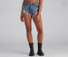 Keep it casual and chic in shorts that are perfect for creating an effortlessly stylish look! The shorts feature a high-rise waist. a multi-button down front. a traditional five-pocket and belt loop design. heavy destruction. and a cut-off hem with a cheeky fit. Complete the look with a basic tank and sneakers.