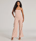 Channel that casual-chic vibe in this strapless knit jumpsuit featuring a fitted bodice. strappy cargo-style pockets. and a relaxed wide-leg silhouette. Dress it up with hoop earrings and heels!