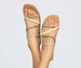 These casual and trendy sandals are perf for the summer season. They feature an open square-shaped toe. a multi-colored strappy design with leopard print and croc-embossed details. and a flat sole. Style these sandals with a basic tee and denim shorts.