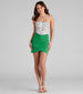 Keep it casual with a mini skirt that is perf for pairing with a casual tee or dressy blouse. The skirt features an elastic high-rise waist. a wrap design. and a mini-length hem. The skirt is composed of a lined brushed knit fabric that offers a form-hugging fit with a moderate stretch.