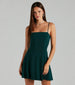 Breeze in looking casual and flirty in this short dress at parties and date nights! It features a sleeveless square neck. spaghetti straps. and a flattering A-line silhouette on smooth knit fabric. Complete the look in a necklace and earrings set.