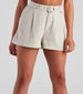 Keep it casual with shorts that are perf for every day! The shorts feature a high-rise waist. a single button with zipper closure. a removable belt with an O-ring buckle. slant pockets. and a wide-leg hem. The shorts are composed of a lined linen fabric that offers a relaxed fit with minimal stretch. Complete look with a crop top.