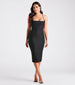 This midi dress is a casual showstopper! Make heads turn in this alluring dress featuring a sleeveless square neck. spaghetti straps that lace up in the back. a bodycon silhouette. and a fitted hem with a back-slit accent. Complete the look in dainty stiletto heels for a daytime celebration.