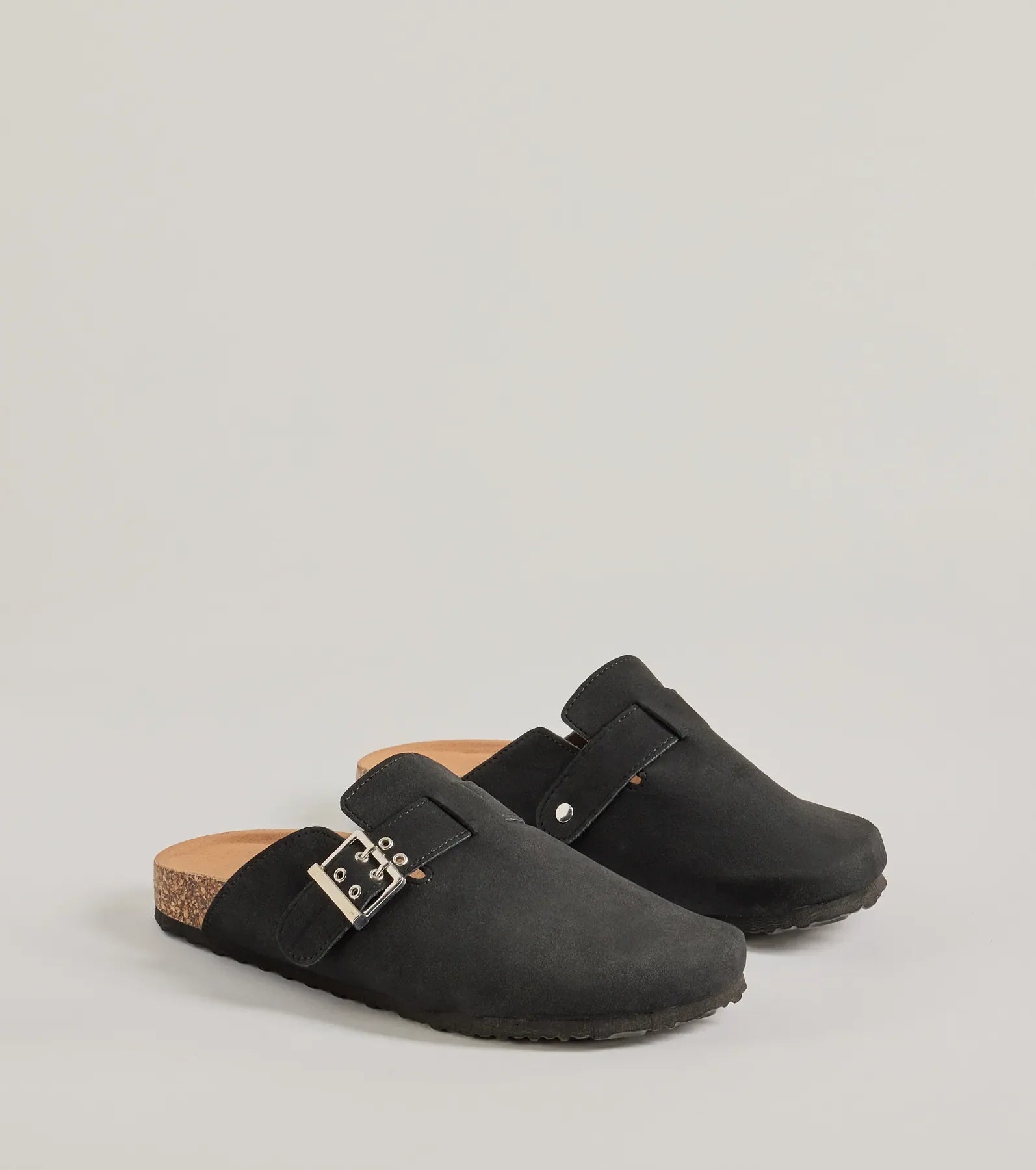 Casual and currently trending. these faux suede slip-on clogs are perfect for low-key days. Pair with a cropped jacket.