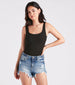 Bring the casual vibes to your everyday 'fits with this sleeveless bodysuit. Featuring a scoop neckline. thin tank shoulder straps. a matching scoop-back design. and a form-hugging fit. this bodysuit can effortlessly be styled for whatever you have planned. The knit fabric features a textured pattern and offers plenty of stretch. Pair with denim shorts and a flowy duster for a cute weekend look.