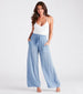 These airy and chic wide-leg pants are perf for your casual weekend plans. They feature a high-rise elasticized waist. a faux front drawstring. dual front pockets. and a relaxed fit with a wide-leg silhouette. The lightweight gauze fabric has no stretch. Style with a crop top and sandals for a breakfast date.