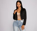 Layer on this satin cropped blazer for a casually chic look to dress up your everyday 'fit! It features a lapel collar. long sleeves. dual button detailing. and a cropped. tapered fit. Pair this blazer with high rise mom jeans for an elevated. trendy vibe!