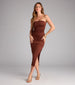 Strut looking casually sultry in this strapless midi dress that accentuates your curves and can easily be dressed up or down!