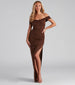 Sultry and sophisticated. the Catalina formal dress leaves little to the imagination. She features an off-the-shoulder neckline with a twist front accent that effortlessly shapes the fitted. empire waist. Her curves have a moment in the form-fitting silhouette with side ruching. and a sexy slit for a show of skin along the maxi-length hem. Complete your show-stopping look with sparkly duster earrings and heels.