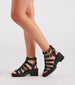 Look what caught your eye! These faux leather sandals are perfect for edging up your everyday style. They feature a sleek round toe. a caged strap design. a lug sole. and dual ankle buckle closures. Complete the look in trendy boyfriend jeans.