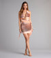 Too cute to stay in. This bodycon mini dress is made for sunset dinners and endless summer nights with a flirty open back. faux wrap waist. and playful ruffle vibes.