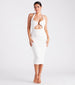 Catch flights not feelings! This halter midi dress is bringing those getaway vibes. It features a sleeveless halter neckline with a tank strap. an O-ring bust insert with a cutout accent and a form-hugging silhouette. Complete the look in cute flat sandals for a sunset cocktail hour!