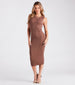 A midi dress you wouldn't mind being spotted in! The dress features a sleeveless crew neck. a bodycon silhouette. and a fitted midi-length hem on stretchy rib knit fabric. Complete the look in a sleek layered necklace for lunch with friends!