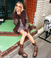 Go wild with it. This leopard mesh mini dress serves flirty movement and fierce energy with its ruched bodice. tiered skirt. and curve-hugging fit that's made to stand out.