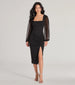 The Celeste crepe midi formal dress features chic sheer chiffon long peasant sleeves and an open back with a tie-back design. The bodycon silhouette boasts a flattering slit for movement along the midi-length hem. Perfect for a school dance or banquet.