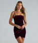 Raise a glass to how stunning you'll look in this velvet mini dress! The short party dress features spaghetti straps. a square neckline. and a wrap-front accent. The luxe velvet fabric effortlessly fits like a glove with side ruching to accentuate your curves. Polish your look off with rhinestone heels.