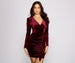 Dazzle and stun in a dress that is fit for a fashionista! Char features a wrap V-neckline. long puff sleeves that bring the drama. glitter details throughout. and a ruched ruffle accent that runs off-center. The dress is composed of a lined velvet fabric that offers a form hugging fit with a moderate stretch.