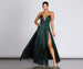 Dress to impress in our seriously stunning Charlie dress! She features a sleeveless bodice. adjustable spaghetti straps. a deep V neckline with a sheer mesh inset. padded cups. and a V back with a zipper and hook and eye closure. Her high waist detailed seam leads to a floor length A-line skirt with thigh high double slits and an included knit bodysuit lining with dual snap button closures and a partial coverage bottom. The dress is composed of a taffeta fabric with a beautiful sheen and minimal stretch.