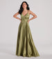 It's impossible to be anything but graceful in the Charlie A-line satin formal dress at galas. black-tie weddings. or soirees! The luxurious pleated satin fabric adds an elegant touch. With a V-neckline. adjustable spaghetti straps. and a lace-up back. this floor-length gown creates a sophisticated A-line silhouette. Complete the look with earrings and a clutch purse.
