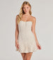 Boast a charming radiance in this sequin tweed mini dress featuring a trendy mini bow accent. a drop waist seam that accentuates your figure. and a pleated A-line fit. Complete the look with a necklace.