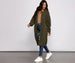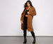 Layer on this cozy trench coat to create some seriously chic outfits. This soft to touch trench coat features a collared neckline. a zippered front with an mini O-ring zipper. side pockets. and a below the knee length. The trench coat is composed of a cozy teddy knit fabric that offers an oversized fit with a moderate stretch. Complete look with lug boots.