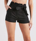 Chic and polished. these woven paperbag shorts will elevate your casual looks! They feature a high-rise paperbag waist with small slit accents at the front. a tie-front belt. front pockets. a cuffed hem. and a fitted silhouette. The smooth twill fabric offers a lightweight feel. Style with a crop top and denim jacket.