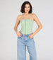Chic and snatched will be your vibe in this woven corset designed with a dainty lace trim at the strapless neckline. It features front hook-eye closures and flexible boning for structure. a lace-up back for a customized fit. and an angled cropped hem perfect for pairing with high-rise bottoms.