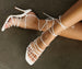 Level up your trendy 'fit with these chic and strappy stiletto heels! They feature an open square toe with a thin strappy design. an open back. wrap-around straps that tie at the back of the leg. and a sleek stiletto heel. Pair these stylish shoes with a bodycon dress and a sleek clutch for a night out with the girls.