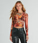 Chic Attraction Marble Swirl Sheer Mesh Crop Top