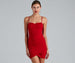 Showcase your beauty in this chic of-the-moment mini dress. It features a sleeveless sweetheart neckline. spaghetti straps. a corset-designed bodice. and a mini-length. curve-hugging silhouette with a wrap-front skirt. Style this dress with a rhinestone necklace and strappy heels.