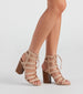 Take care of business in chic style with these peep-toe booties! They feature an almond toe. stacked block heel. lattice front with lace-up. on faux suede material. Complete the look in a trendy sweater dress.