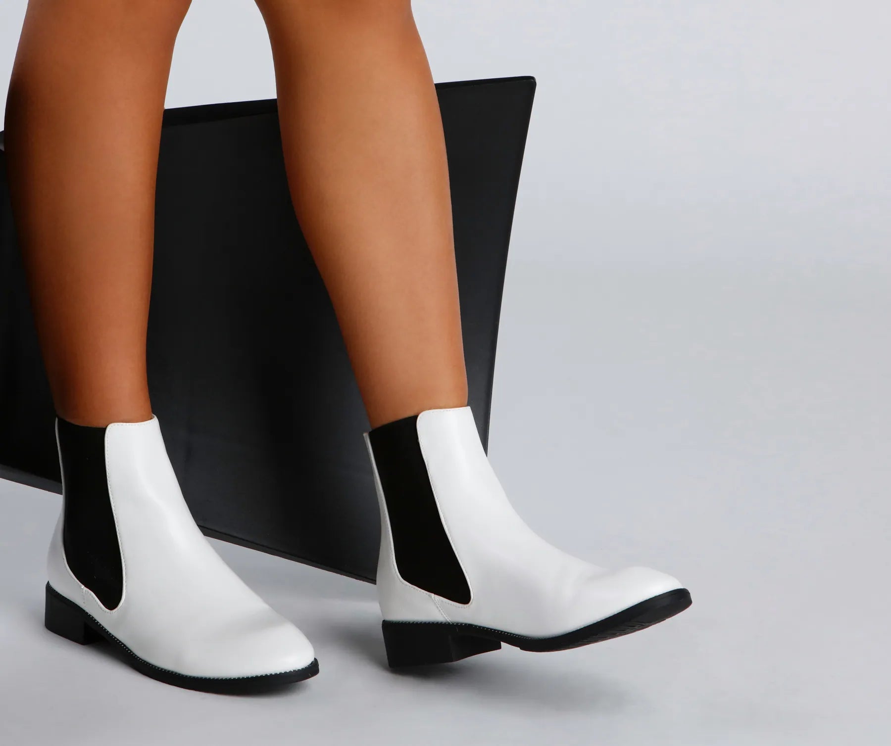 Calling all city girls. these chic booties are just what you need! They feature an almond toe. low block heel. studded accents. and elasticized inserts on the side for easy on and off. Style with straight-leg jeans.